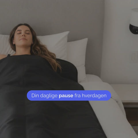 En typisk session varer 30-60 minutter. Begynd gerne med 20-30 minutter og øg varigheden efter behov. Tæppet har indbygget timer og slukker automatisk.